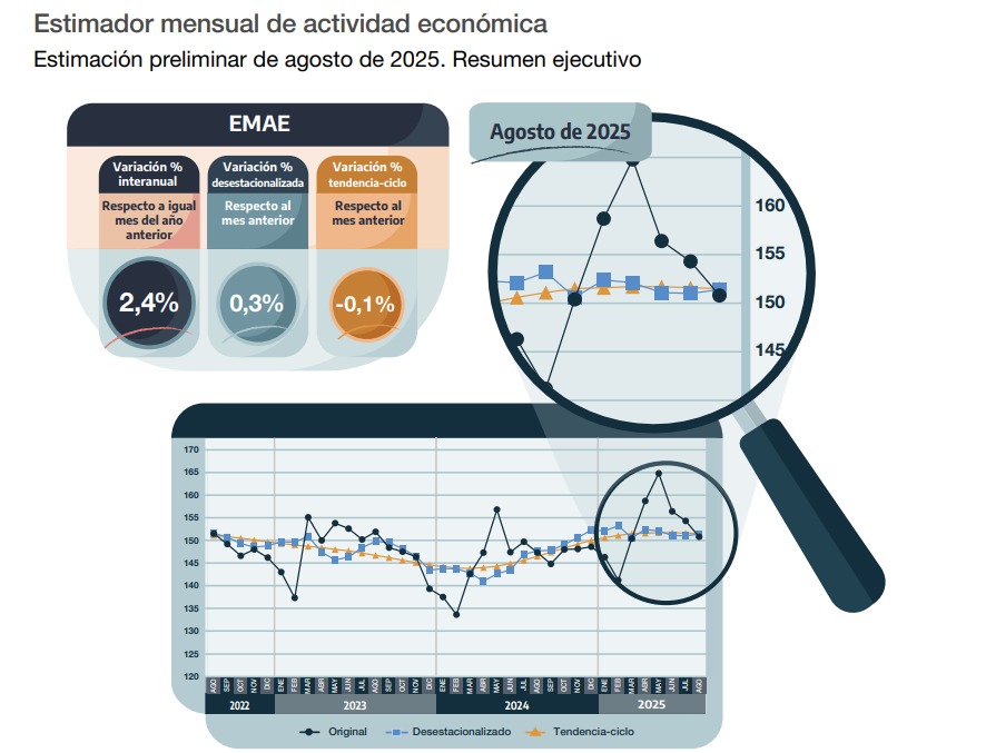 En agosto, el EMAE mostró una mejora mensual del +0,3% desestacionalizada, tras tres meses consecutivos de caída.